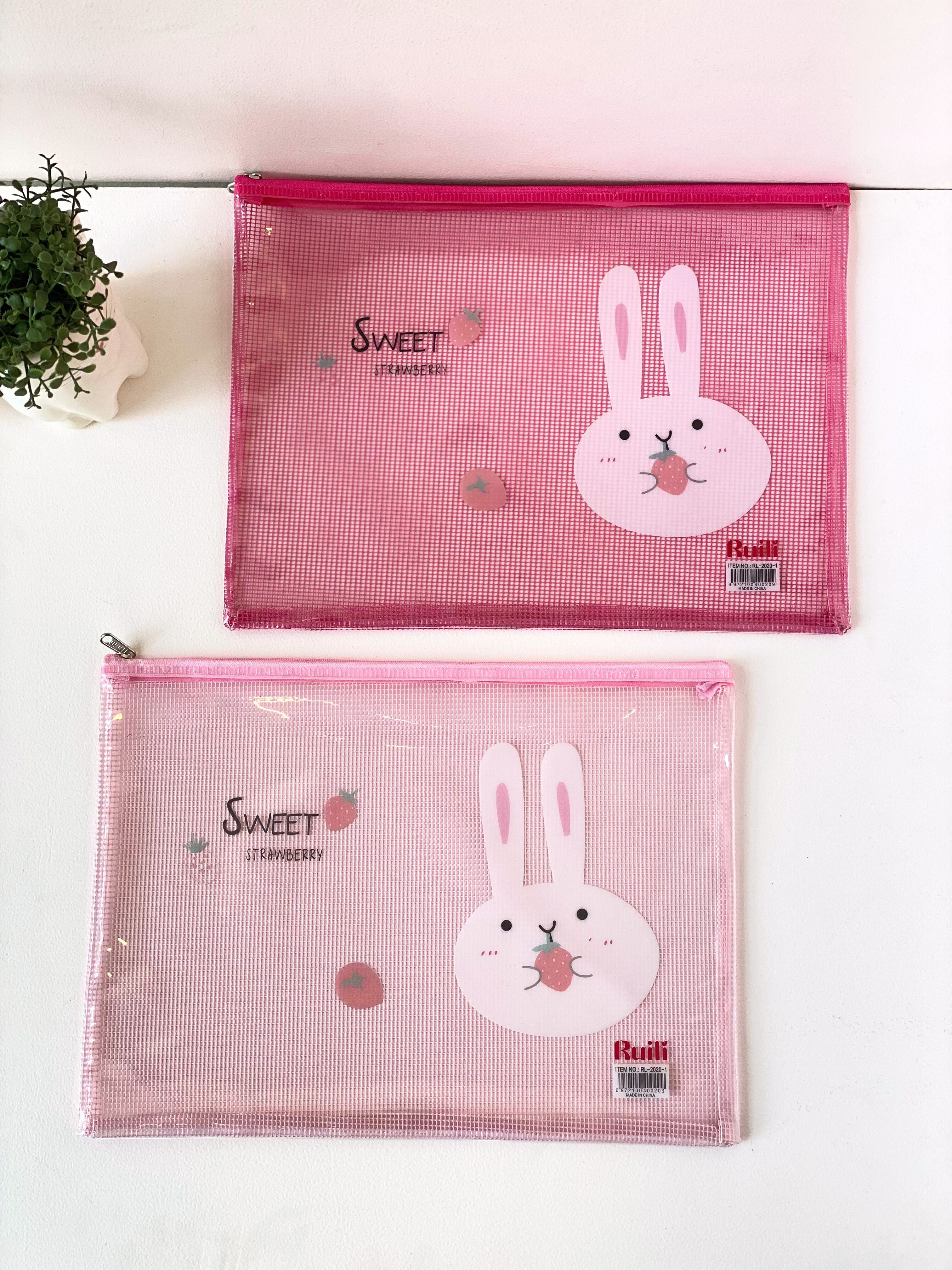 Cute Bunny Mesh Zipper Pouch – Sweet Strawberry Pink Stationery Bag