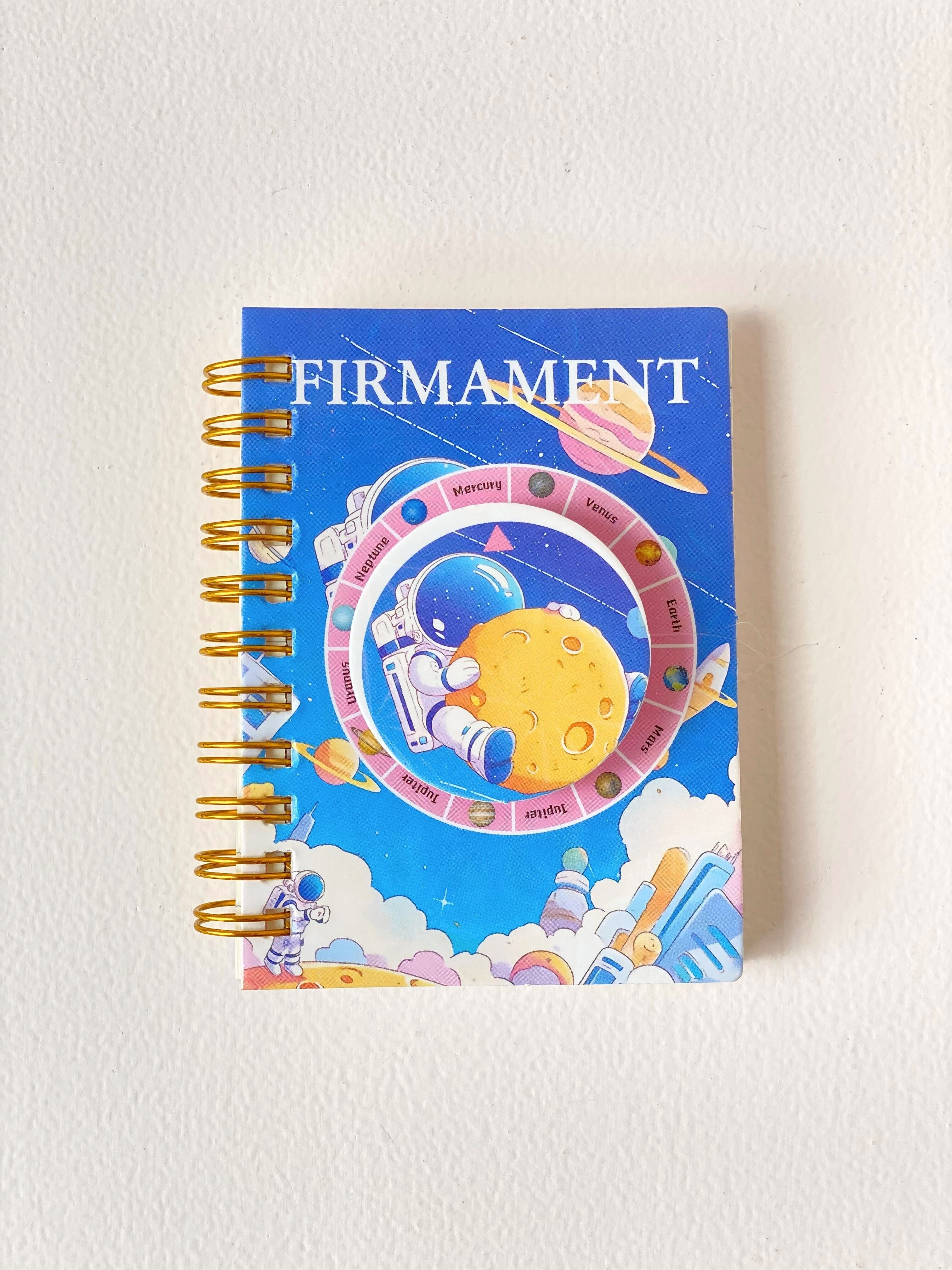 Firmament Mini Spiral Diary – Astronaut-Themed Pocket Notebook with Ruled Pages & Rotating Planet Wheel