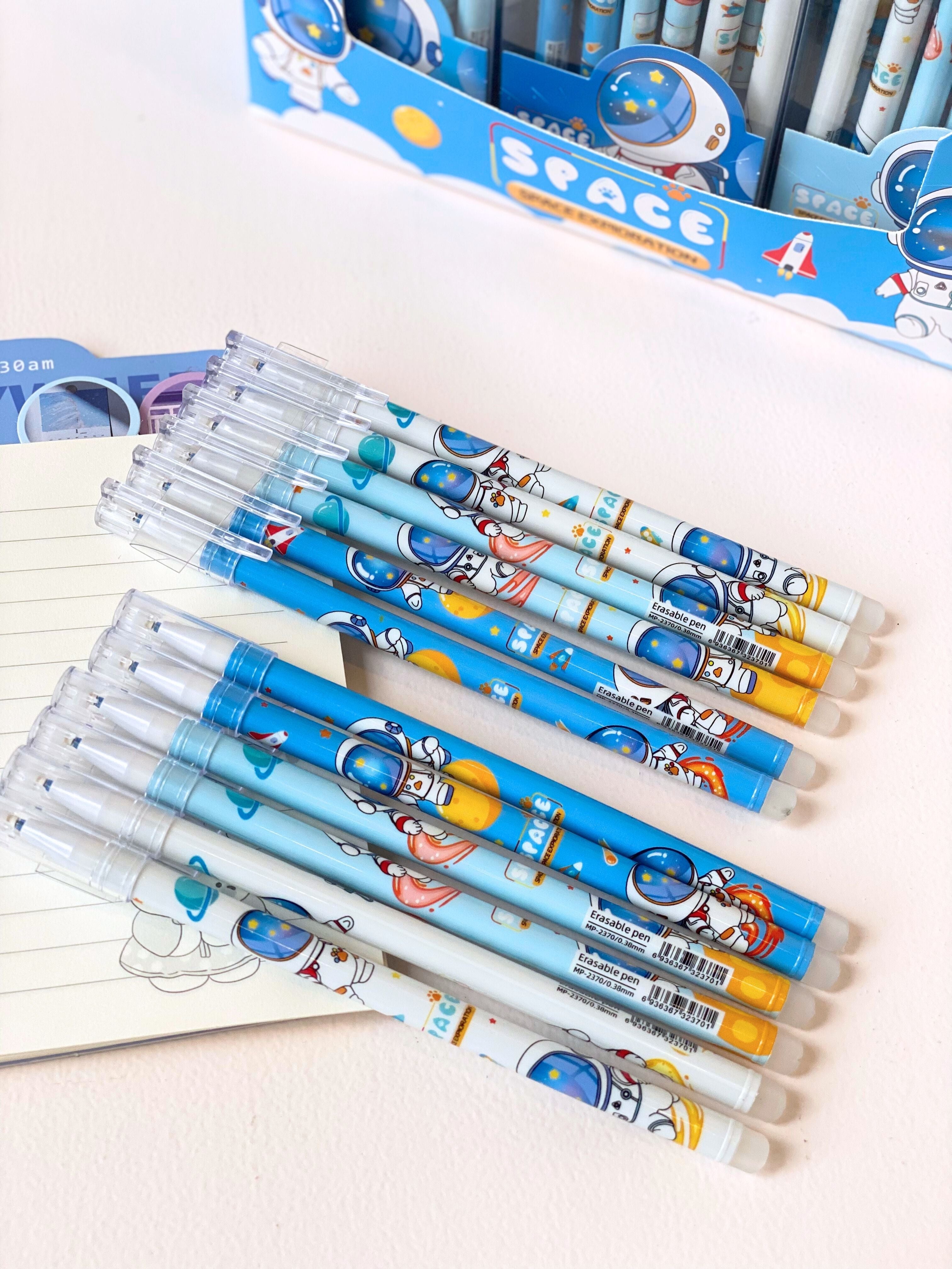 Space Exploration Erasable Gel Pen Set of 12– Cute Astronaut Design | Smooth Writing, Heat-Erase Ink